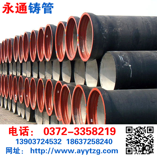 專業(yè)生產(chǎn)球墨鑄鐵管的廠子!安陽市永通鑄管有限公司地處素有“甲骨文之鄉(xiāng)”美稱的中華七大古都---安陽,是具有40多年歷史的國家特大型企業(yè)---安陽市永通球墨鑄鐵管有限公司,是一座高起點、高標(biāo)準(zhǔn)、高質(zhì)量的現(xiàn)代化企業(yè)!球墨鑄鐵管的主要成分有碳、硅、錳、硫、磷和鎂等。防腐性能優(yōu)異、延展性能好,密封效果好,安裝簡易、主要用于市政、工礦企業(yè)給水、輸氣,輸油等。